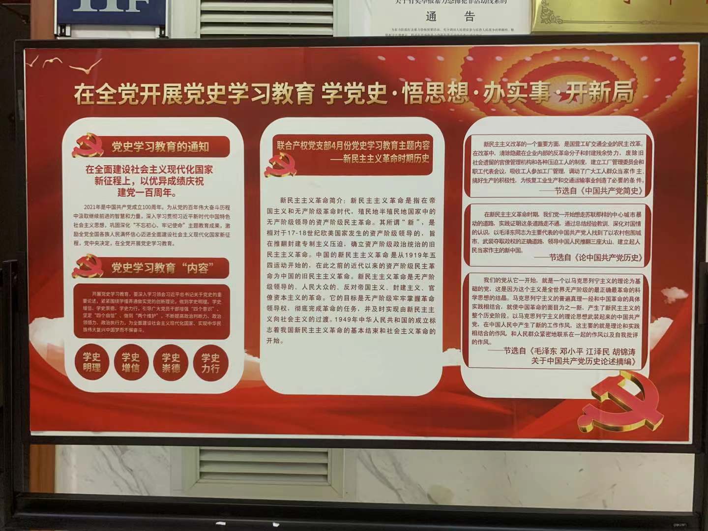 自黨史學(xué)習(xí)教育開展以來,聯(lián)合產(chǎn)權(quán)黨支部通過制定學(xué)習(xí)計(jì)劃、制作月度學(xué)習(xí)宣傳欄、組織黨員定期學(xué)習(xí)討論等方式持續(xù)推進(jìn)學(xué)習(xí)教育工作。下一步,聯(lián)合產(chǎn)權(quán)黨支部將繼續(xù)深入開展黨史學(xué)習(xí)教育主題活動,切實(shí)把黨史學(xué)習(xí)教育與總結(jié)經(jīng)驗(yàn)、觀照現(xiàn)實(shí)、推動工作結(jié)合起來,切實(shí)做到學(xué)黨史、悟思想、辦實(shí)事、開新局,鍛造“不折不扣、不偏不倚”的政治執(zhí)行力,以優(yōu)異成績迎接建黨一百周年。