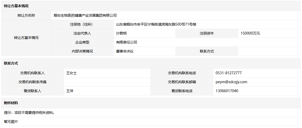 - 轉(zhuǎn)讓方:煙臺生物醫(yī)藥健康產(chǎn)業(yè)發(fā)展集團(tuán)有限公司