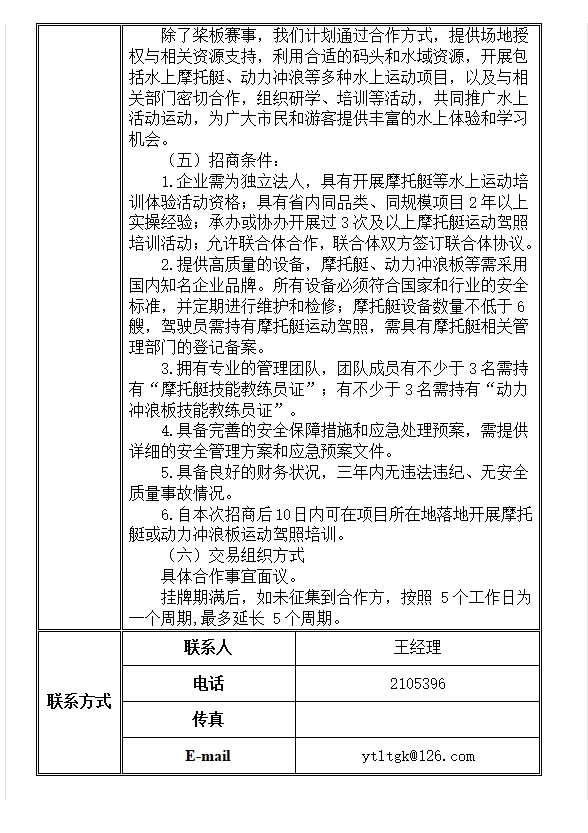 芝罘灣廣場碼頭水上活動業(yè)態(tài)合作商招商