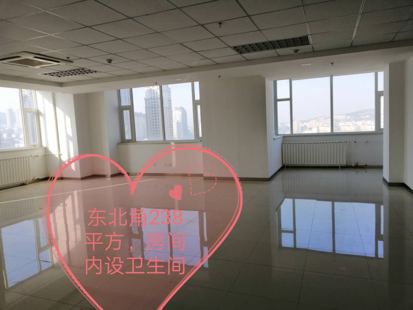 精裝修寫(xiě)字間面積從48-238㎡不等,有不同種類(lèi)的戶(hù)型,可滿(mǎn)足您各種需求;另有兩層未裝修的樓層也可供選擇;網(wǎng)點(diǎn)房一間面積277㎡,廣場(chǎng)場(chǎng)地同時(shí)對(duì)外出租。