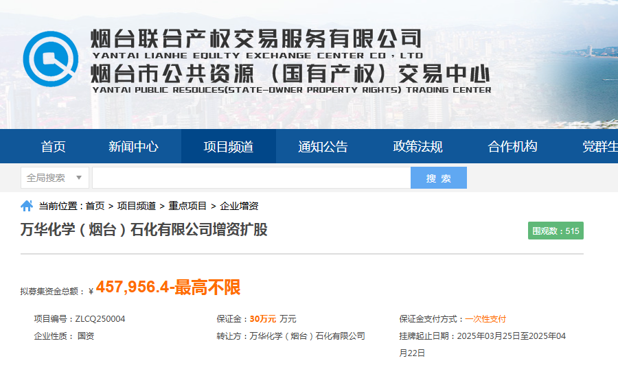 近日,我市重點(diǎn)國企混改項目“萬華化學(xué)(煙臺)石化有限公司增資擴(kuò)股”通過山東產(chǎn)權(quán)交易中心與煙臺聯(lián)合產(chǎn)權(quán)交易服務(wù)有限公司(以下簡稱“煙臺聯(lián)合產(chǎn)權(quán)”)聯(lián)合掛牌,成功實現(xiàn)45.79億元增資目標(biāo)。本次引入境外投資方1家(增資后占股25%),為科威特石化工業(yè)公司(科威特石油公司全資子公司),該公司成立于1963年,位于科威特艾哈邁迪省,注冊資本6億科威特第納爾(約折合人民幣139.38億元),是科威特石化領(lǐng)域的核心企業(yè),在全球石化行業(yè)中占據(jù)重要地位。此次交易創(chuàng)下我市國有企業(yè)增資擴(kuò)股單筆最高交易紀(jì)錄,標(biāo)志著我市要素交易平臺服務(wù)國企改革取得新突破。